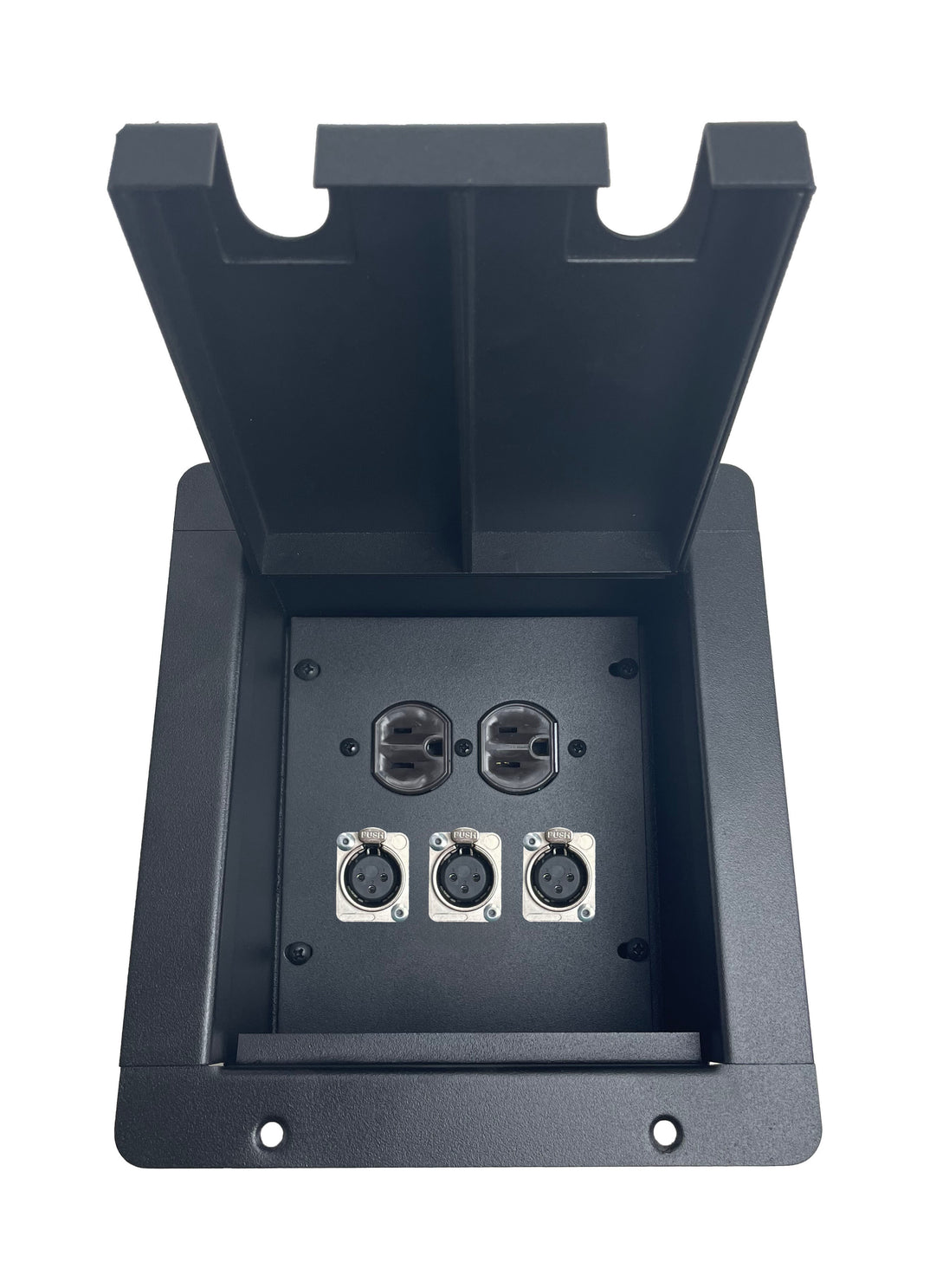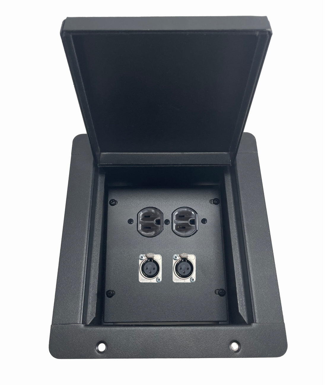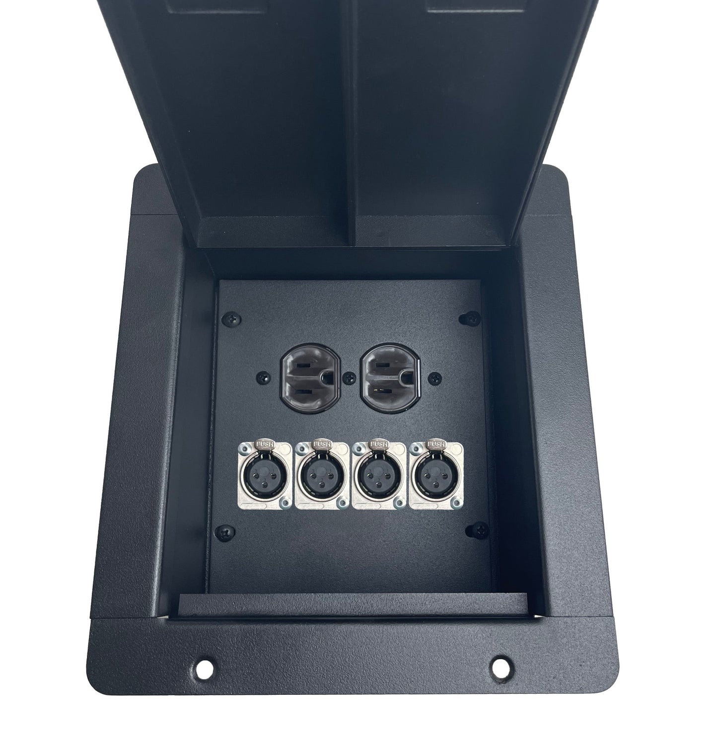 Made in the USA PROCRAFT Recessed Stage Pocket / Floor Box with AC Duplex Power/ Any Channel Configuration/ Solder Style Connectors